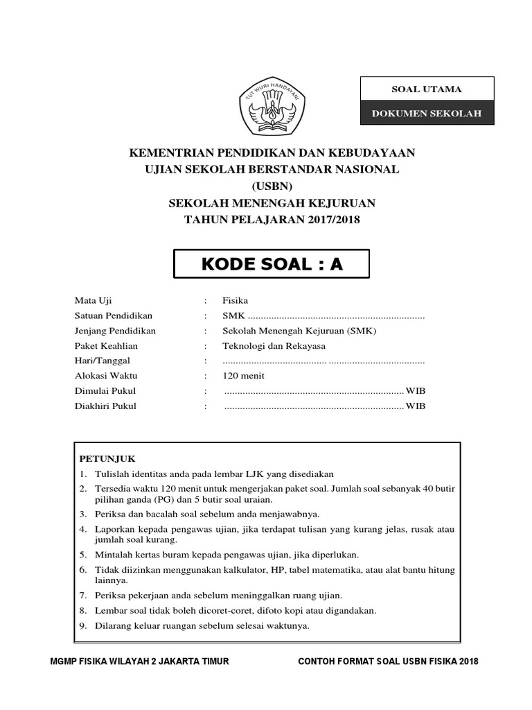 Contoh Format Kisi Kisi Soal Ujian Nasional Un Smp Mts 2017 Tahun
