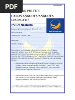 Surat Pernyataan Penyumbangan Dana Kampanye Pemilu 2013