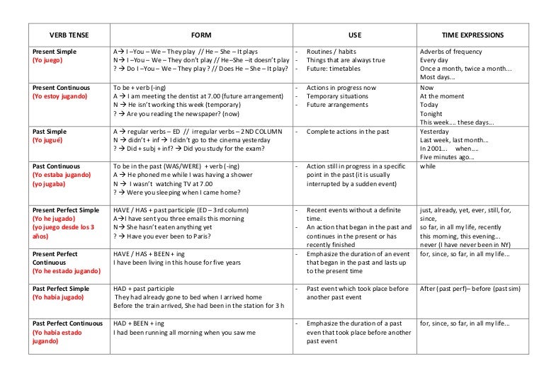 3 X 3 Verb Tense Table Explanation Worksheet Free Esl Printable