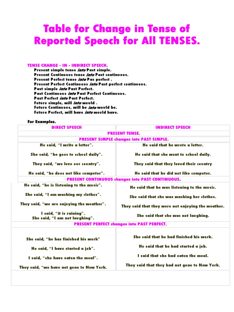 Indirect Speech For Tense Perfect Grammar Grammatical Tense
