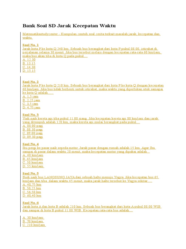 Soal Uh Mtk Kelas 5 Bab Waktu Jarak Dan Kecepatan Semester 1