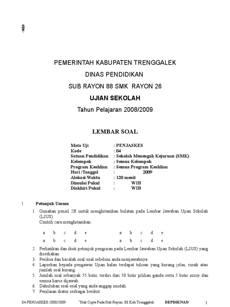 Soal Ujian Sekolah Penjaskes Smk 2009 Soalujian Net