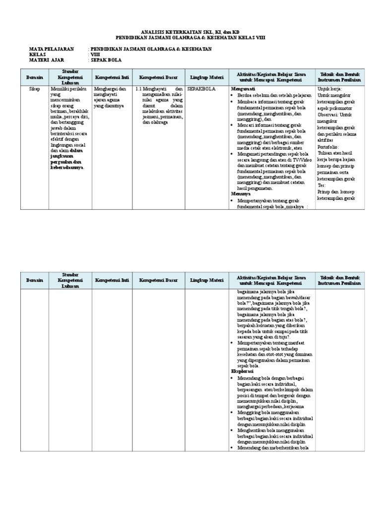 Analisis Keterkaitan Skl Ki Kd Penjas Viii