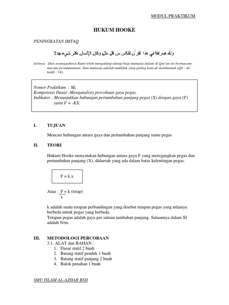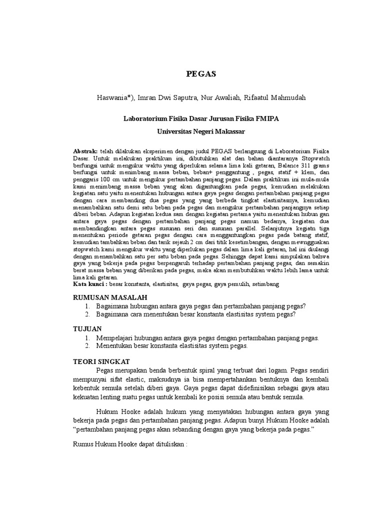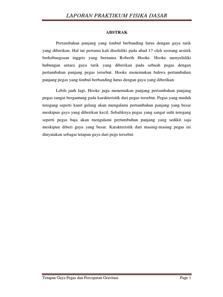 Tetapan Pegas Docx Laporan Percobaan Tetapan Pegas H1 A Tujuan