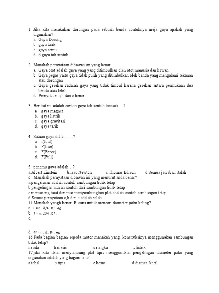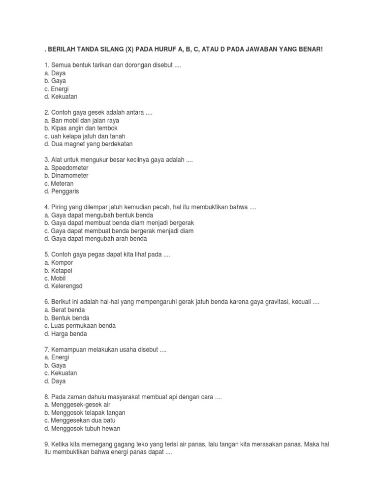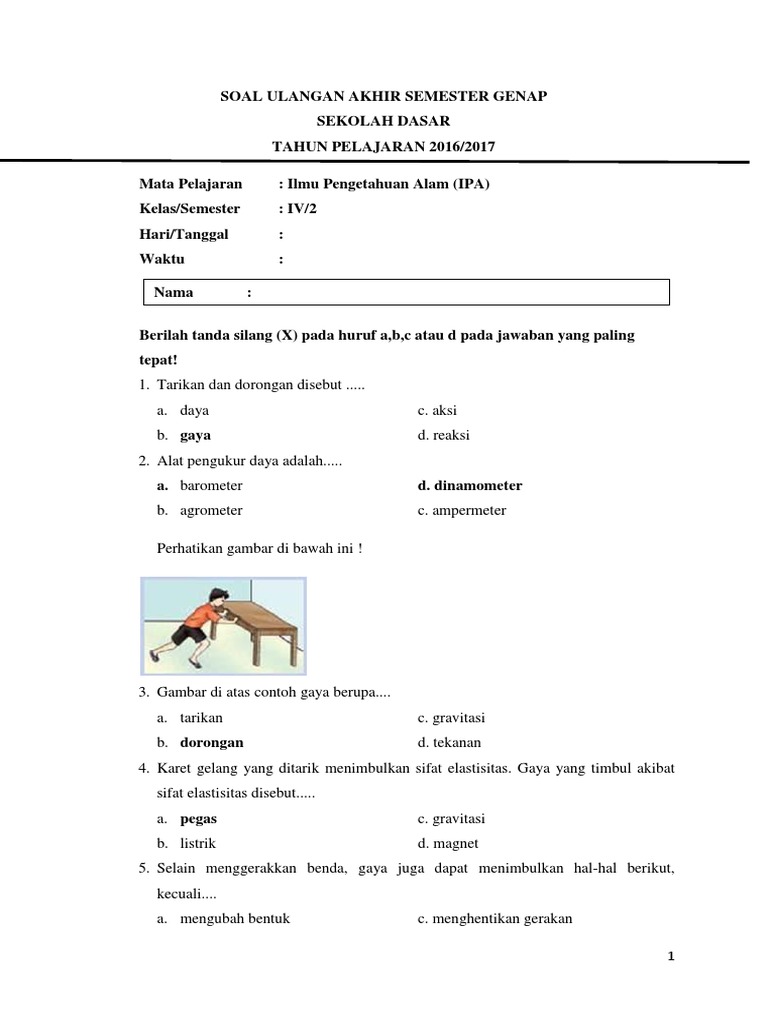 It S Me Soal Soal Latihan Ipa Semester 2 Kelas Vi Gaya Dan Gerak