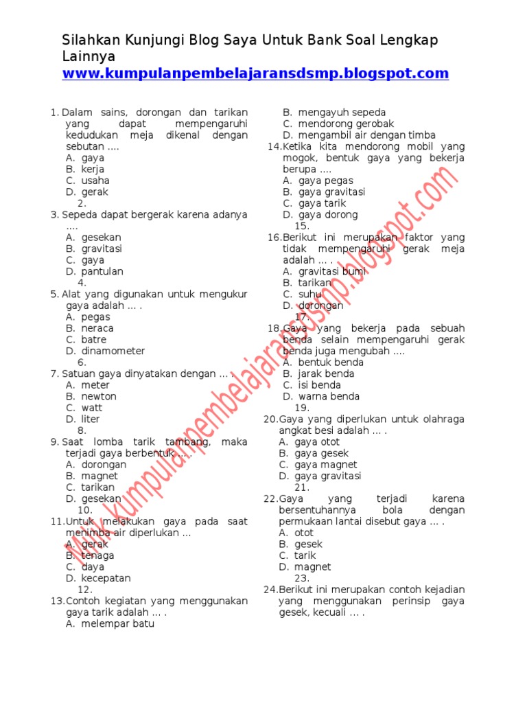 Soal Bab Gaya Untuk Kelas Iv Sd