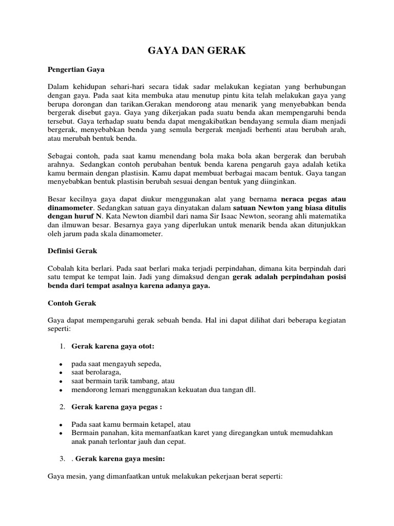 Gaya Kumpulan Materi Ipa Kelas 5 Sekolah Dasar