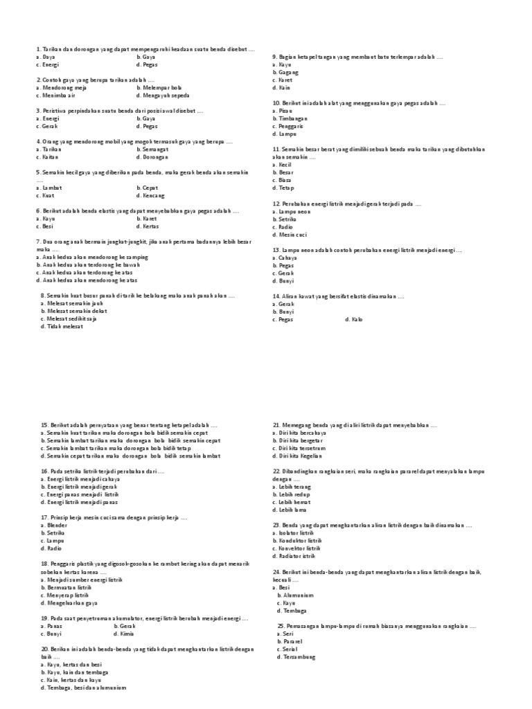 Soal Ipa Kelas 6 Sd Bab Gaya Gerak Dan Perpindahan Energi Dan Kunci