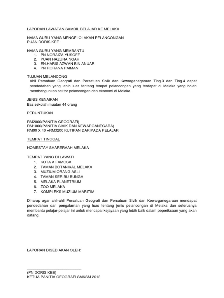 Laporan Lawatan Sambil Belajar Ke Melaka
