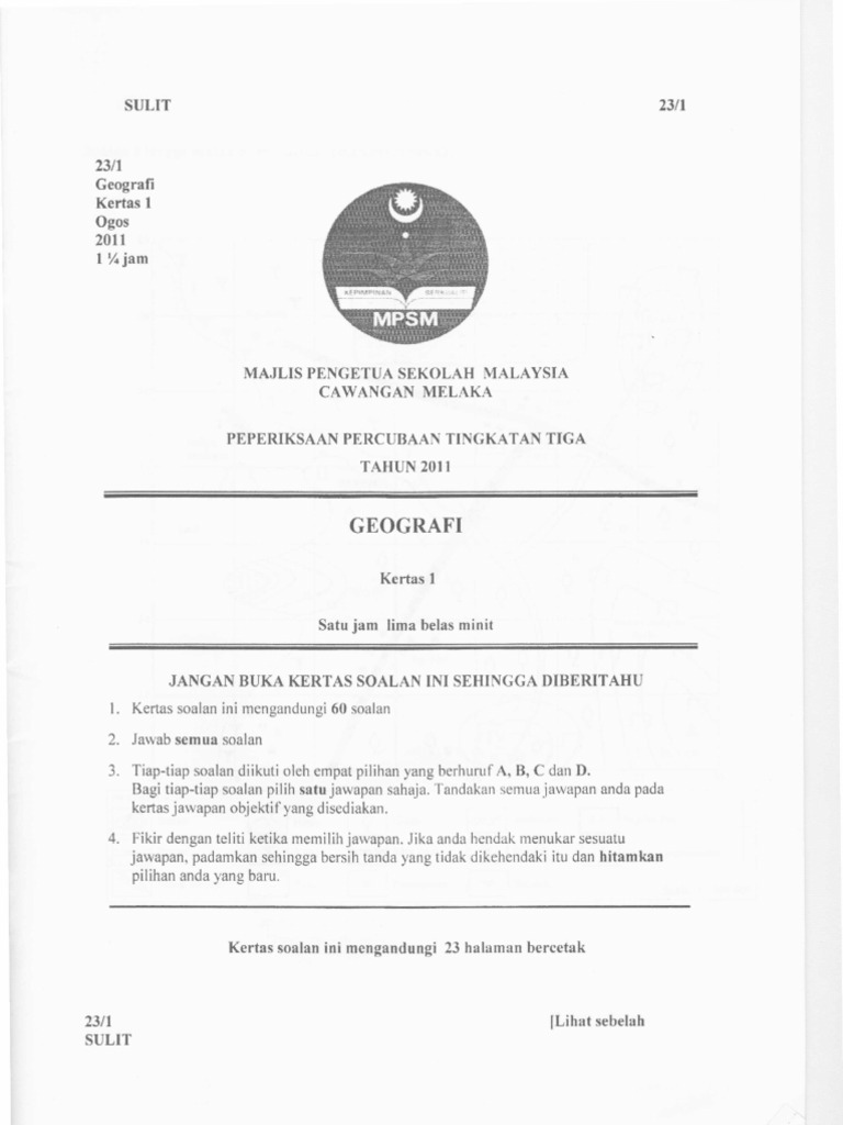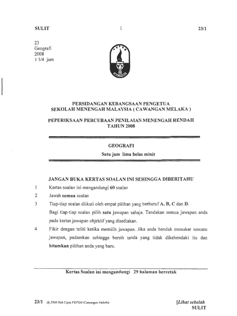 Trial Pmr Melaka Geografi 2011