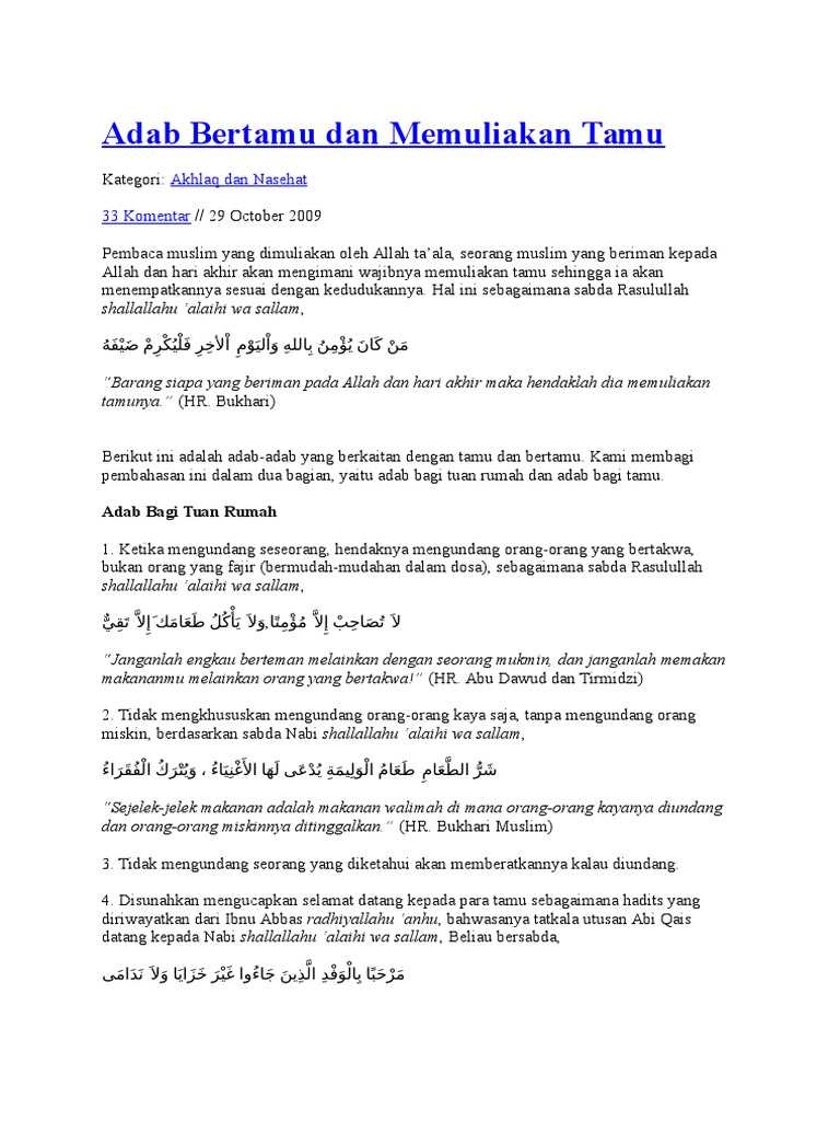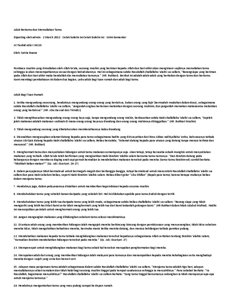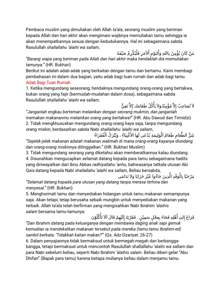 Adab Bertamu Dan Memuliakan Tamu Muslim Or Id Pdf