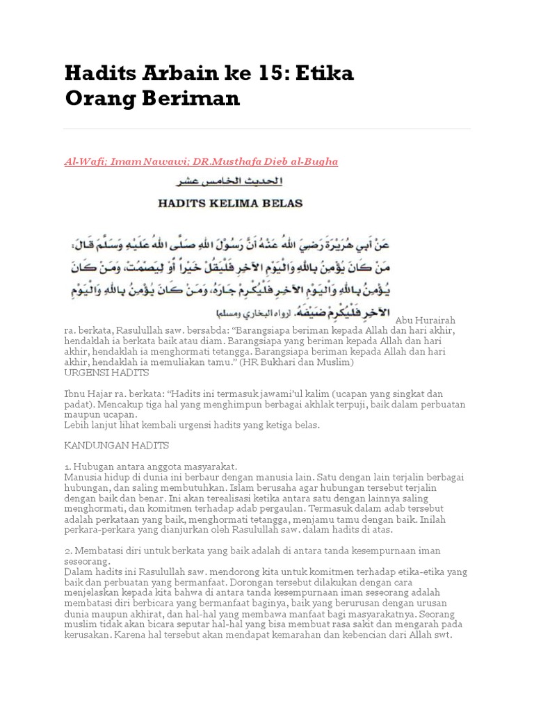 Informasi Kapuas Pembahasan Arba In Nawawi Hadits Ke 15
