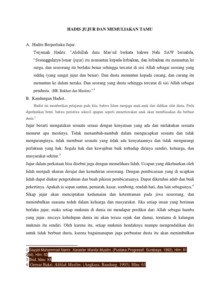 Hadis Jujur Dan Memuliakan Tamu