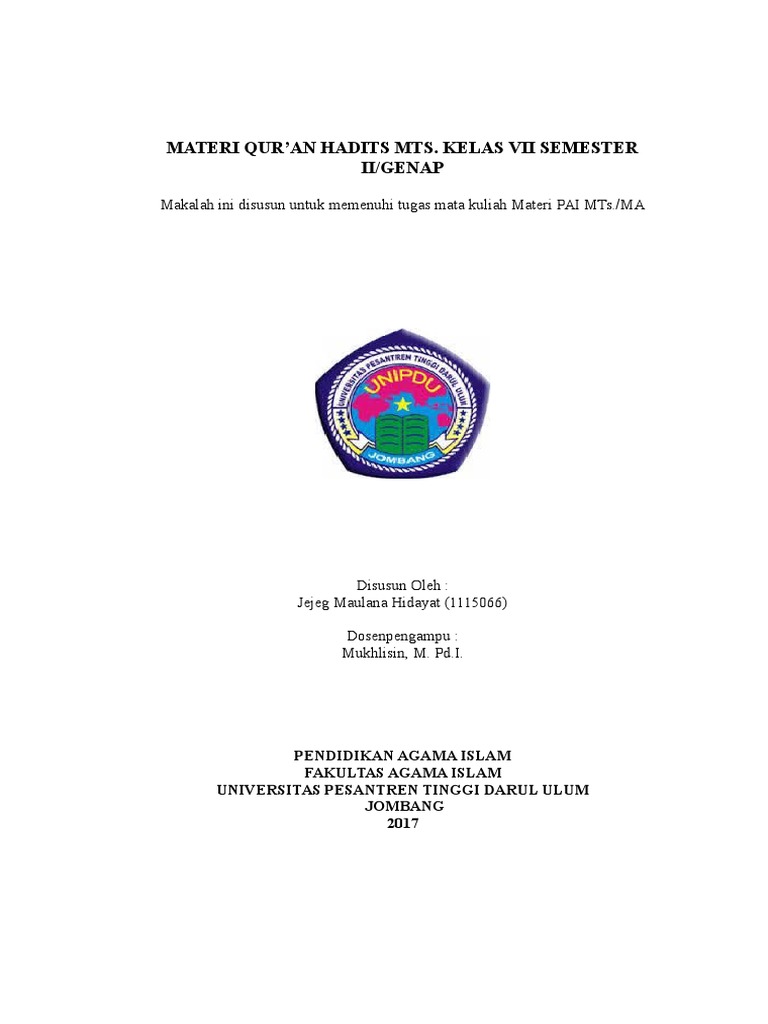 Qur An Hadits Mts Kelas Vii Semester Ii