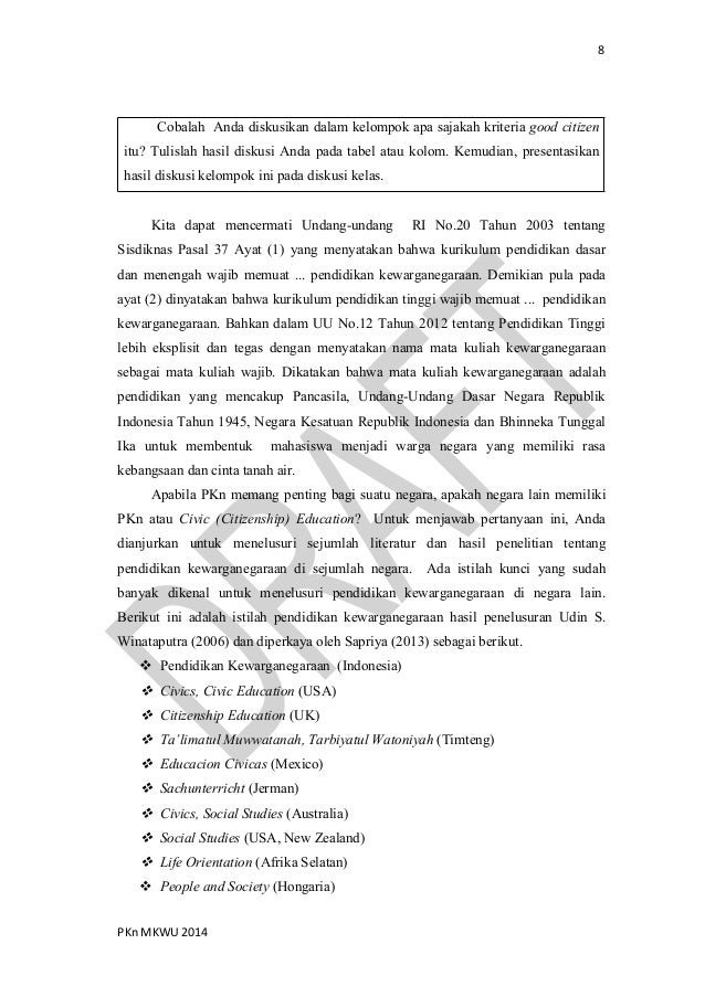 Pedoman Matakuliah Pendidikan Kewarganegaraan Pkn Sebagai Mata