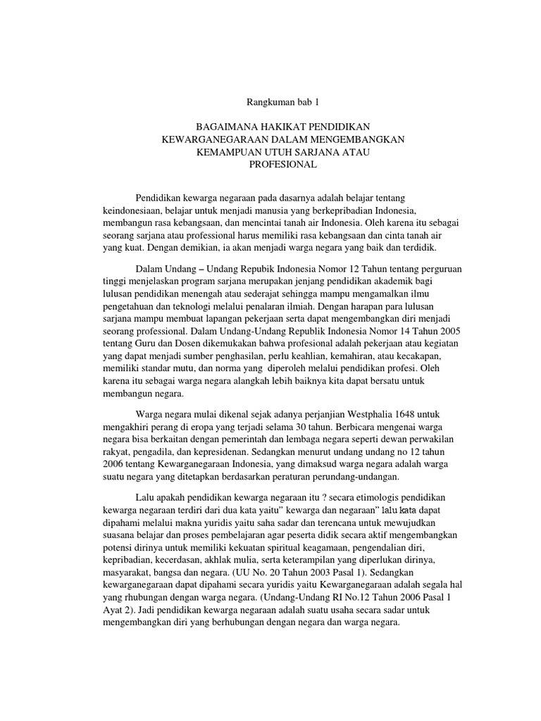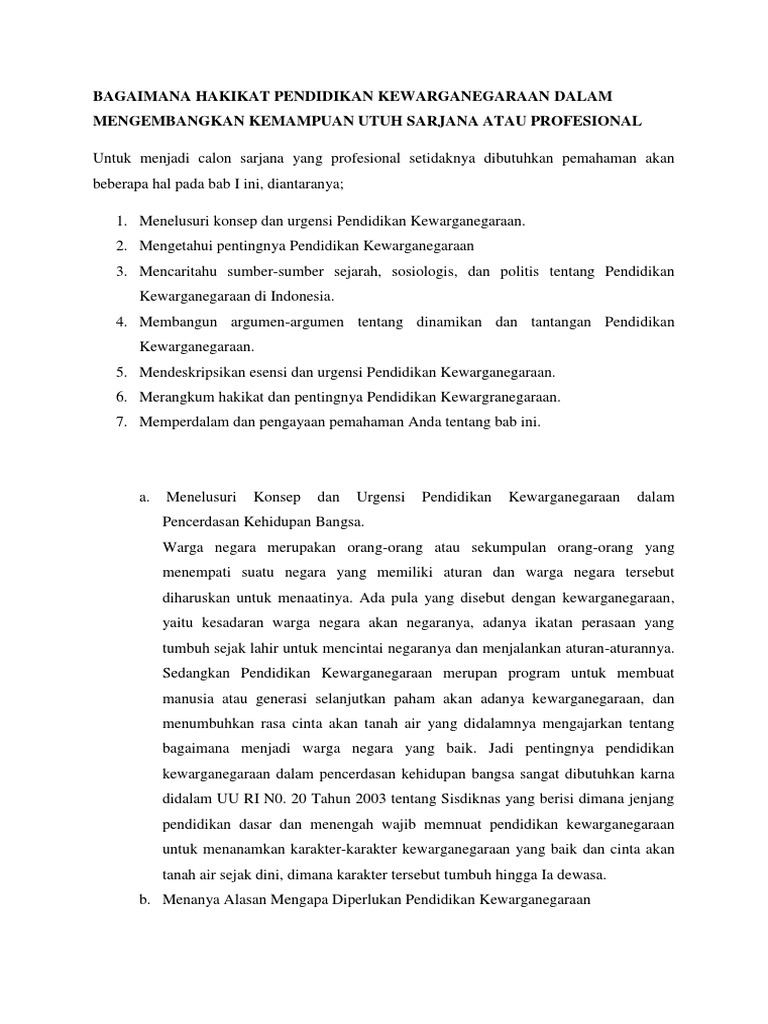 Hakikat Pendidikan Kewarganegaraan Dalam Mengembangkan Kemampuan Utuh Sarjana Atau Profesional Pdf