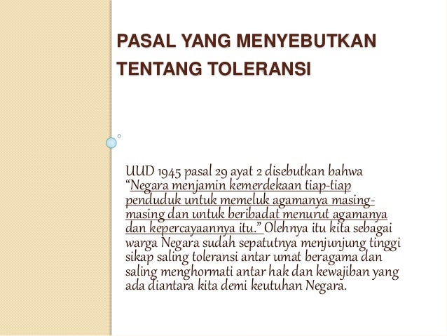 Toleransi Dalam Kehidupan Bermasyarakat Berbangsa Dan Bernegara
