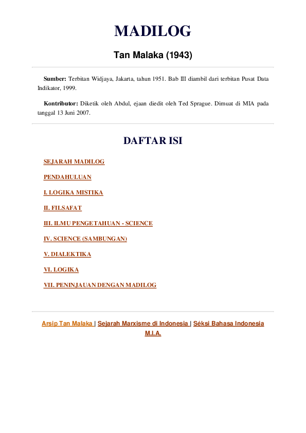 Madilog Tan Malaka 1943 Fahrur Rozi Ma Academia Edu