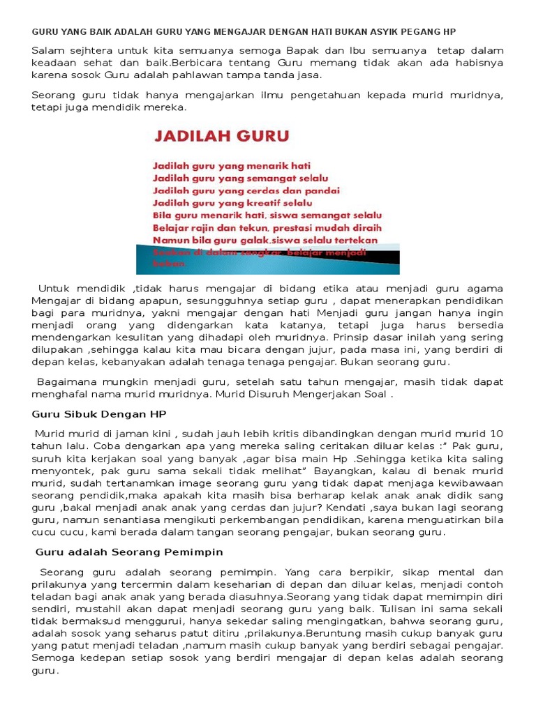 Guru Yang Baik Adalah Guru Yang Mengajar Dengan Hati Bukan Asyik