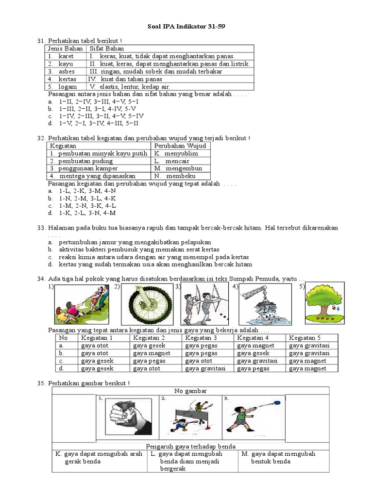 40 Soal Ipa Sd Gaya Dan Gerak Beserta Kunci Jawaban Baru