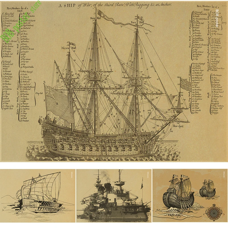 Online Shop Retro Poster Kapal Perang Kuno Peta Nautical Bagan Home