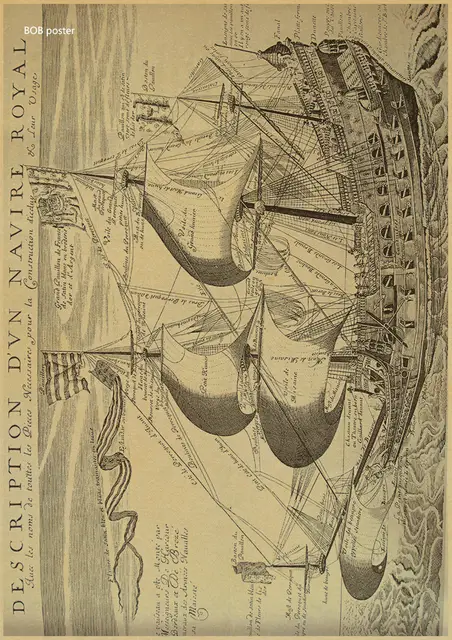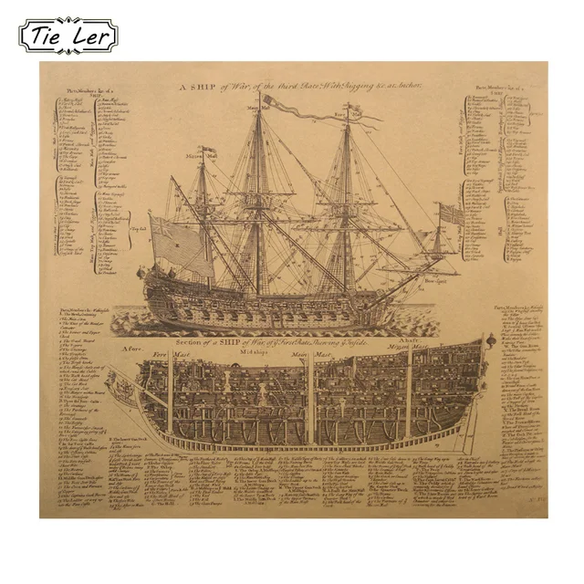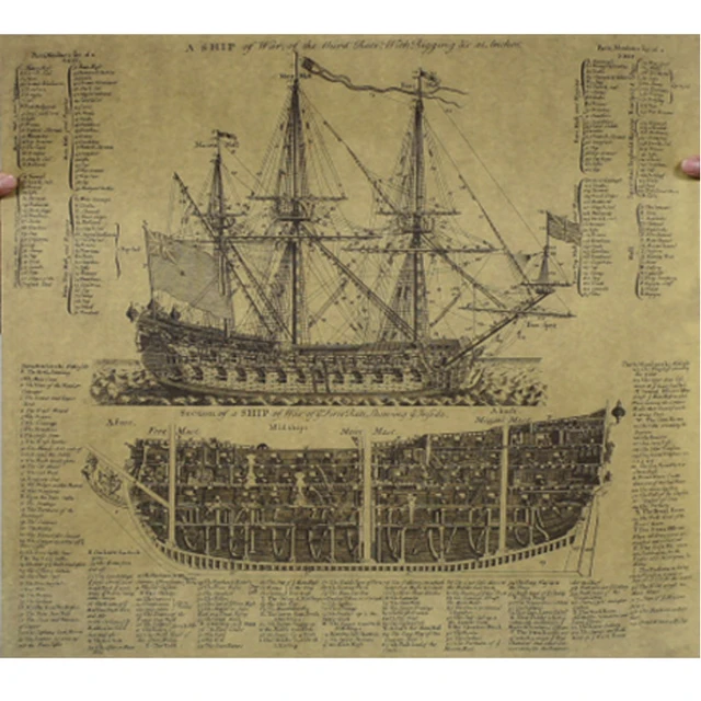1 Pcs Kuno Kapal Perang Gambar Desain Film Kraft Kertas Poster