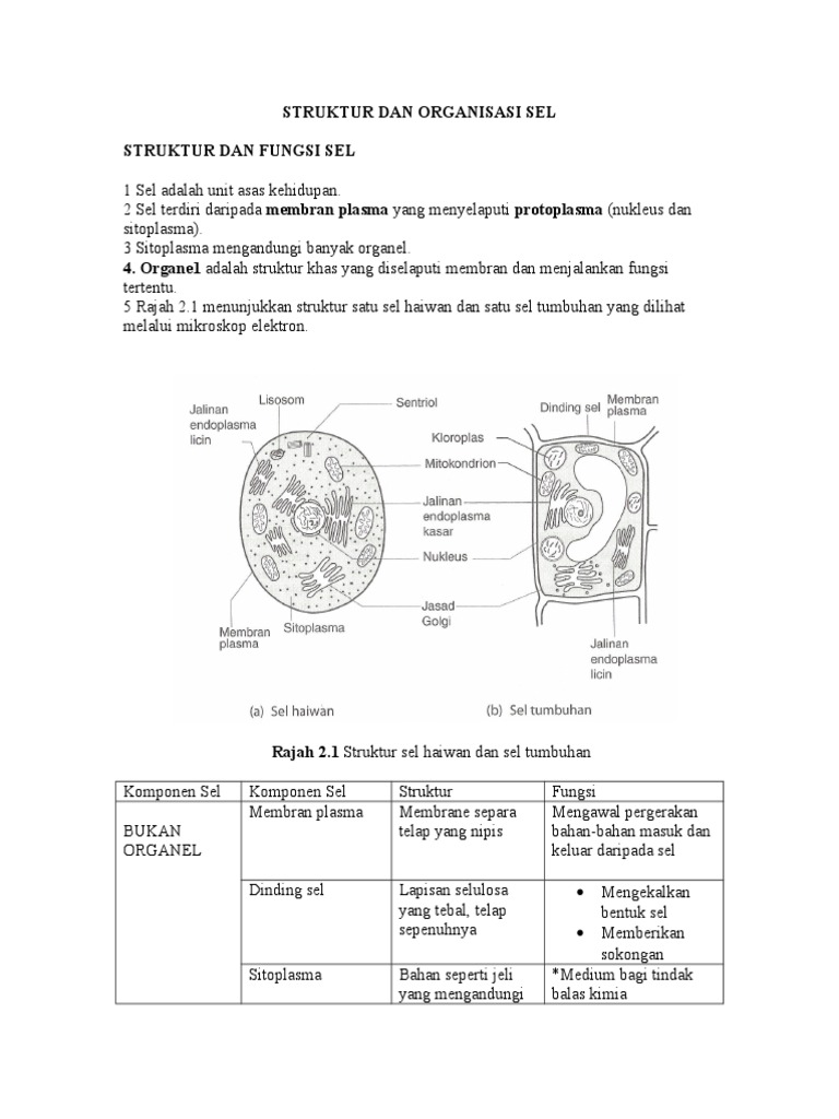 Biologi 4 5 Komponen Sel Haiwan Sel Tumbuhan