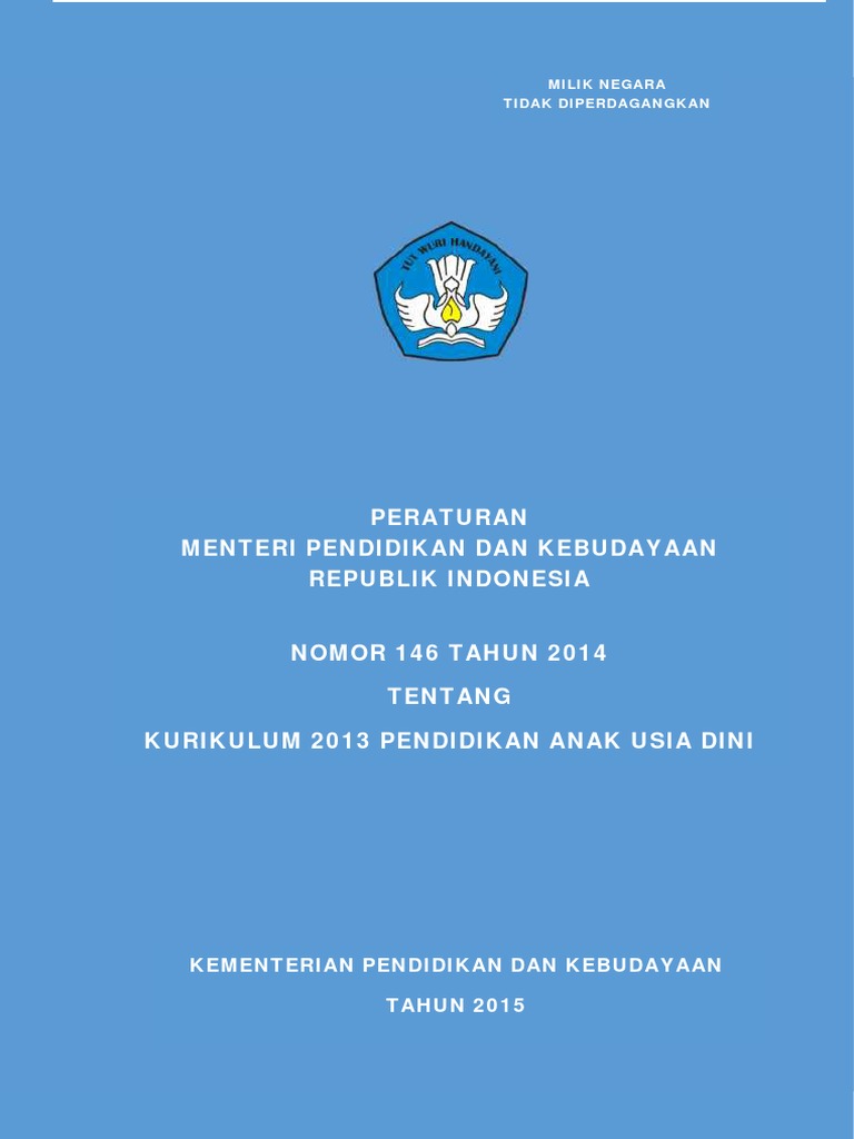 Salinan lampiran i peraturan menteri pendidikan dan kebudayaan republik indonesia nomor. Peraturan menteri pendidikan dan kebudayaan republik indonesia nomor 146 tahun 2014 tentang kurikulum 2013 pendidikan anak usia dini kementerian pendidikan dan kebudayaan. Permen tentang kurikulum 2013.
