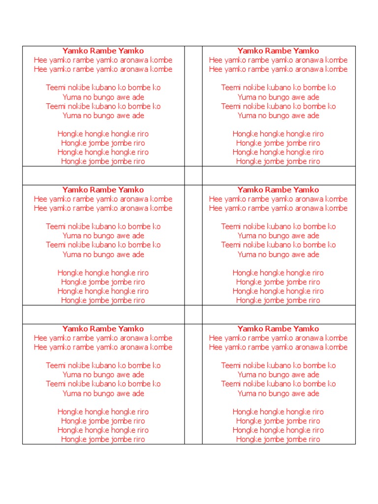 Hee yamko rambe yamko aronawa kombe hee yamko rambe yamko aronawa kombe.