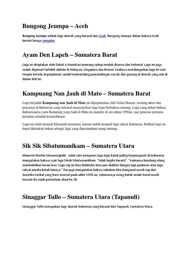 Lagu Lagu Daerah Beserta Lirik Lagu Nasional Indonesia Lengkap