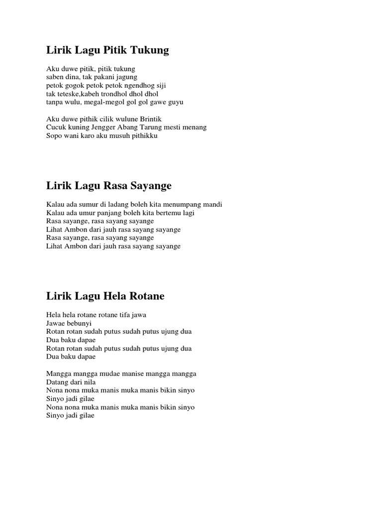 Kumpulan Lirik Lagu Daerah Lirik Lagu Daerah Majalah Online