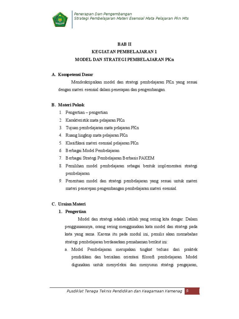 Perangkat Pembelajaran Kurikum 2013 Mata Pelajaran Pkn Warta Madrasah