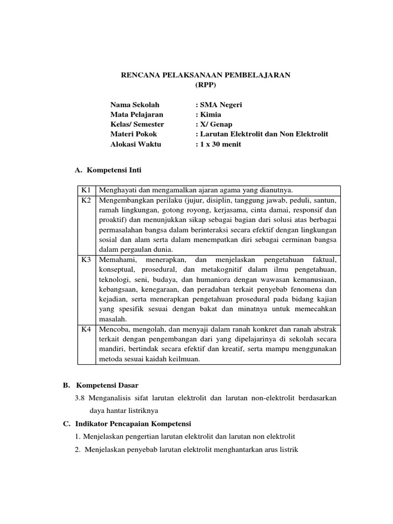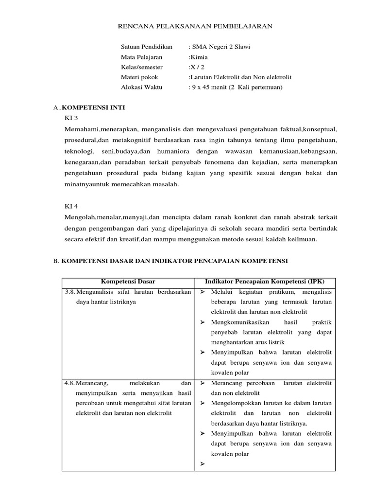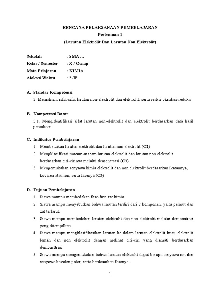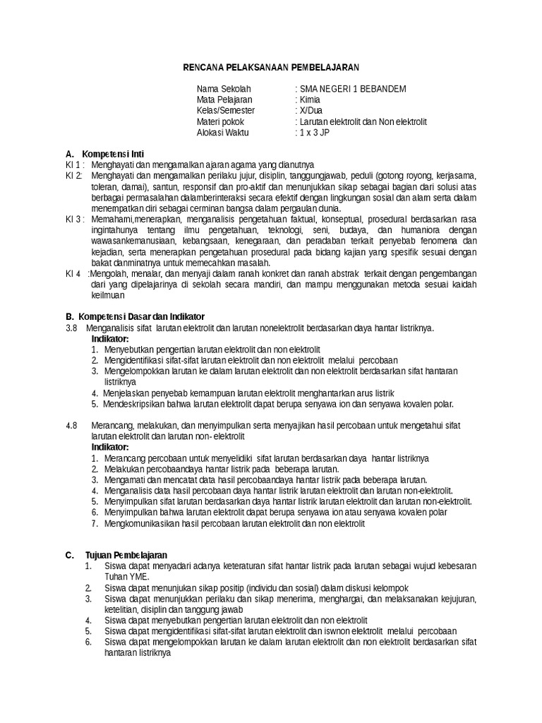 Rpp Larutan Elektrolit Dan Nonelektrolit K 13 Docx Be Smart