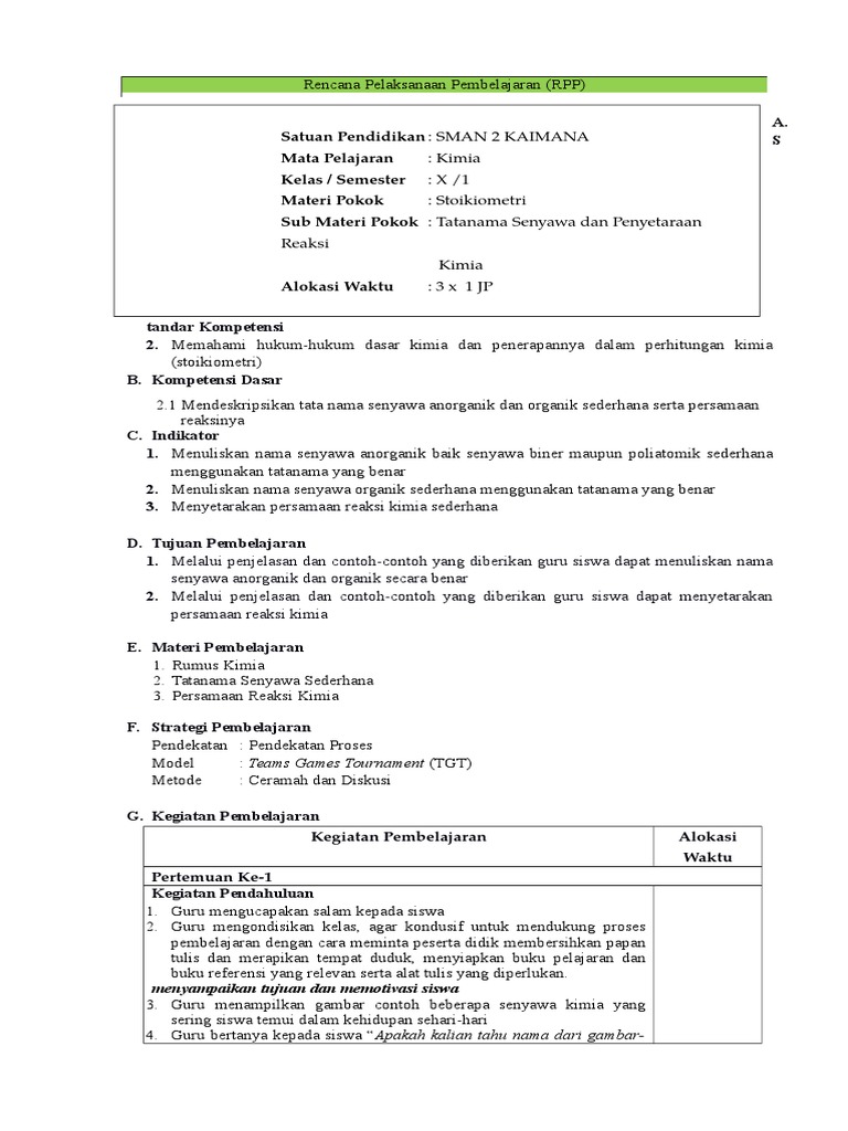 Rpp Lambang Unsur Rumus Kimia Dan Persamaan Reaksi Kls 1 Smsester 1 K13