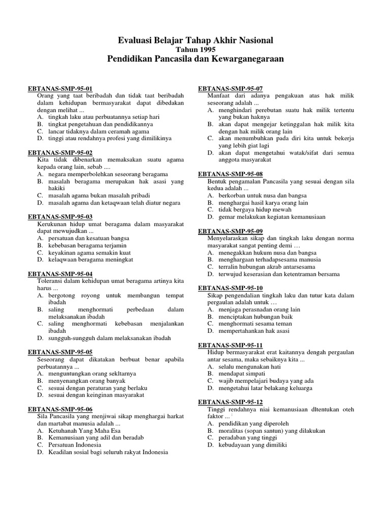 Daftar Jawaban Soal Soal Pengamalan Sila Pancasila Dalam 35 Soal Twk