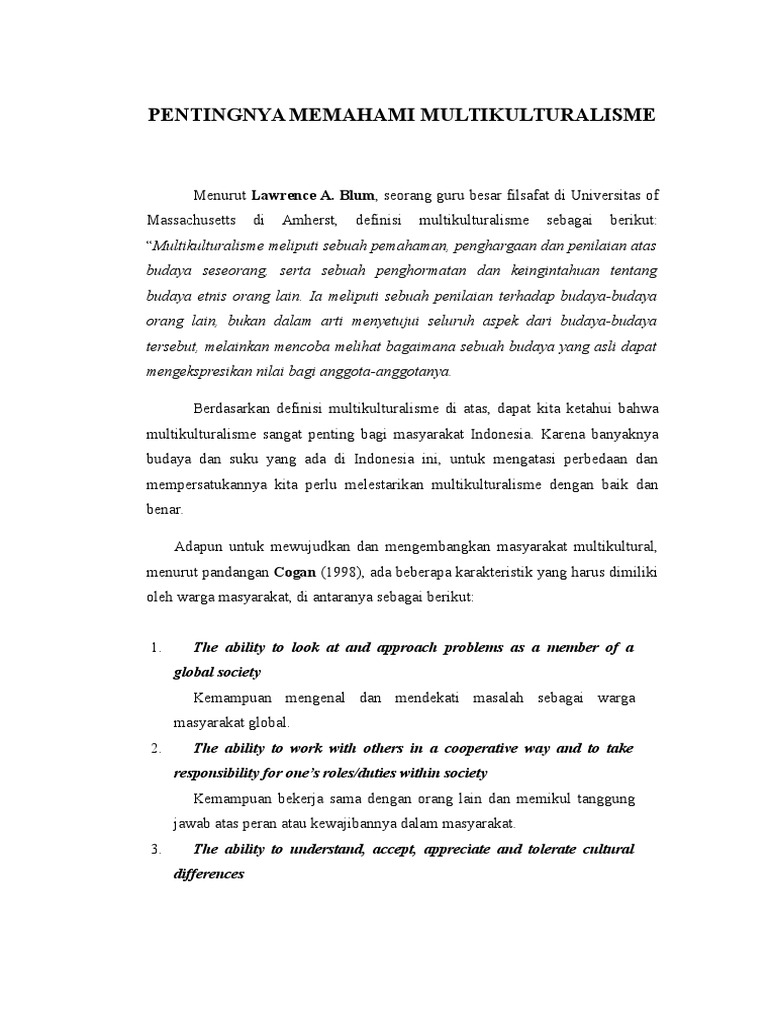 Multikulturalisme Suatu Perspektif Ips Dan Desain Pendidikan