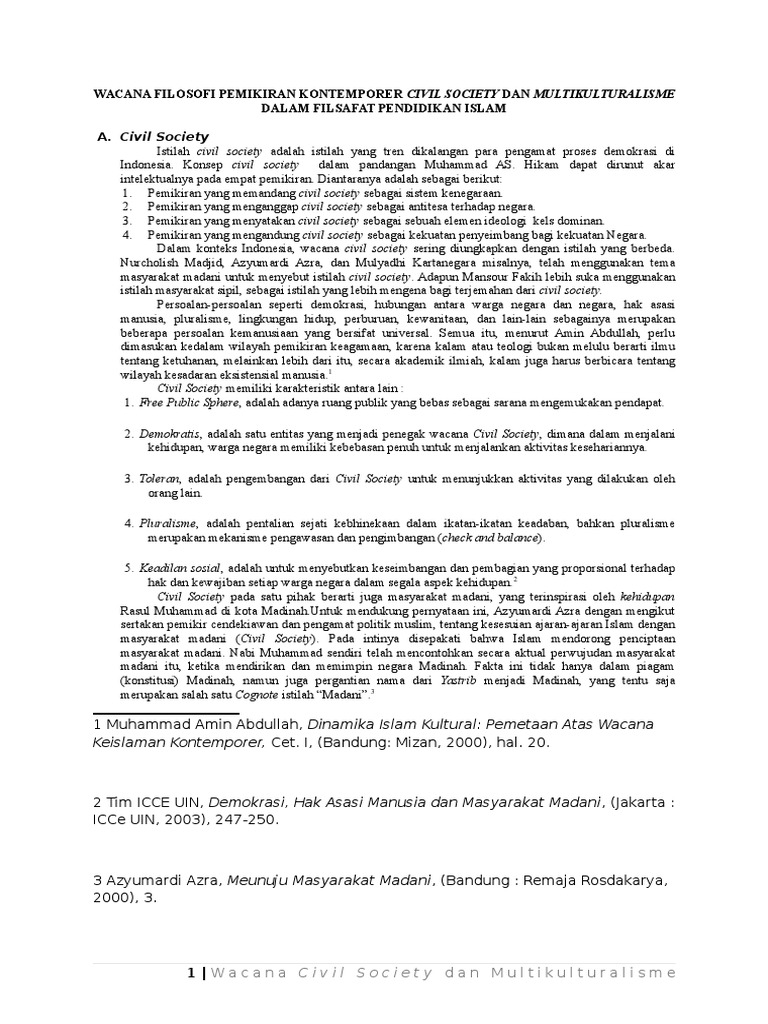 Pdf Civil Society Dan Multikulturalisme Dalam Pendidikan Islam