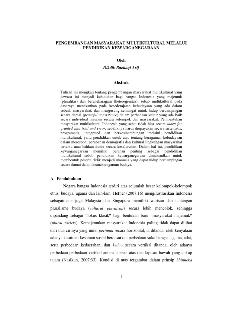 Pdf Mewujudkan Pendidikan Multikultural Di Indonesia Sebuah Kajian