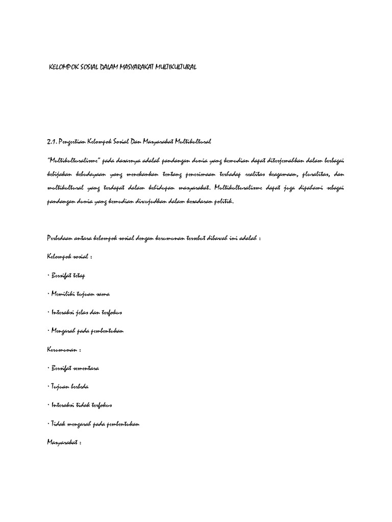 Kelompok Sosial Dalam Masyarakat Multikultural
