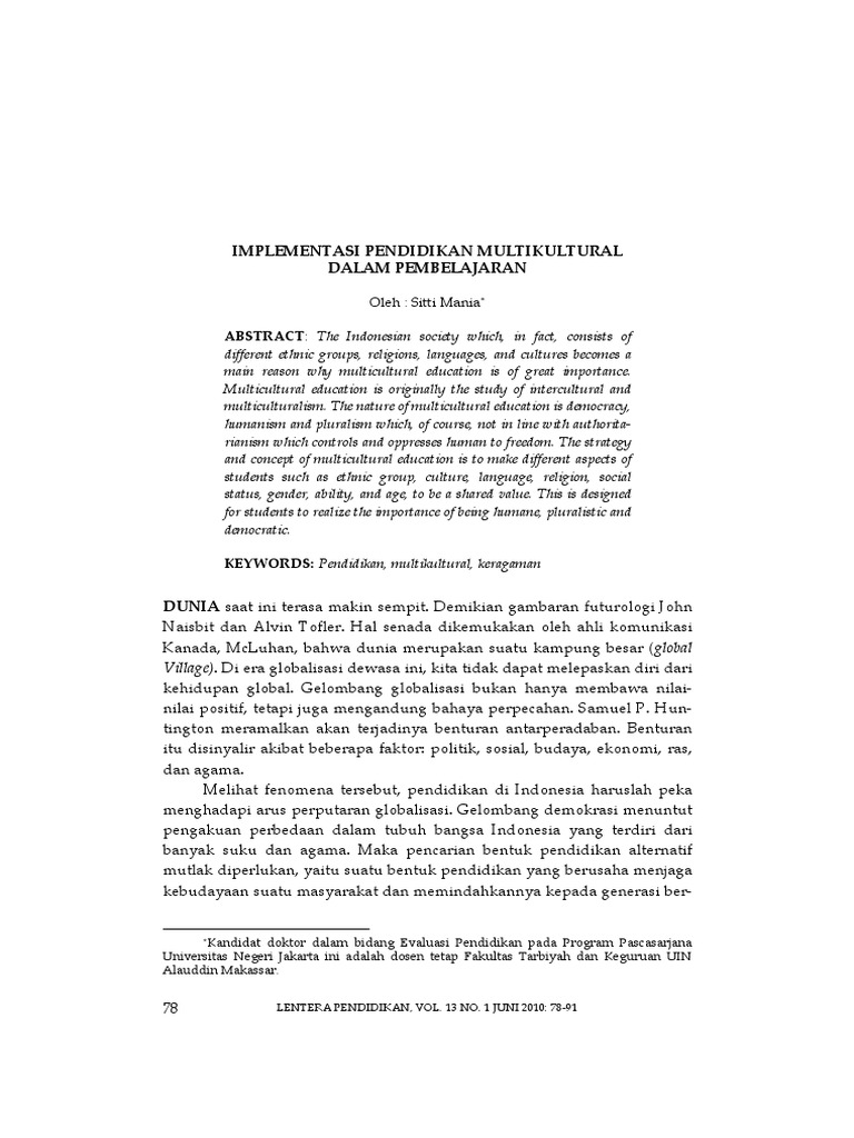 Pendidikan Multikultural Menuju Masyarakat Bermartabat Jurnal