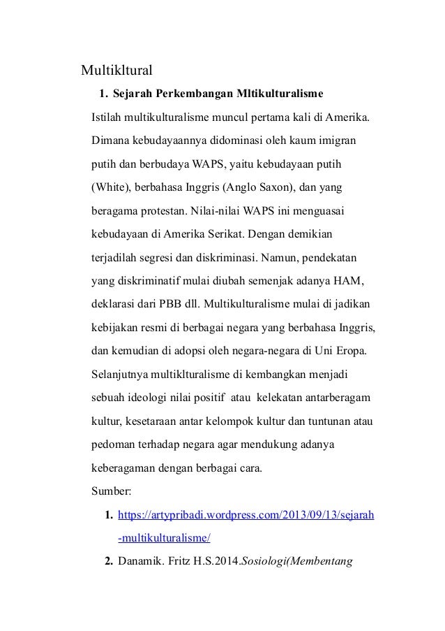 Makalah Masyarakat Multikultural Ips Pendidikan Sejarah Tugas Kuliah