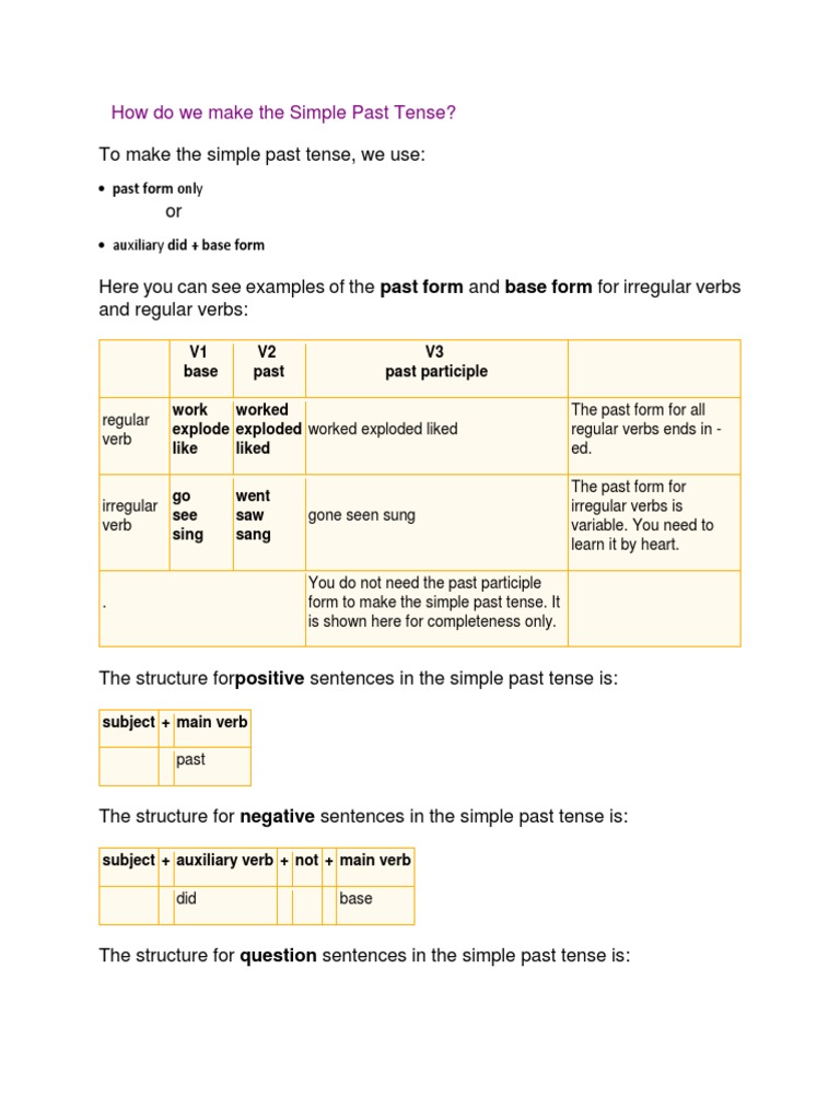 Formation Of The Simple Past Tense Of Verbs In English