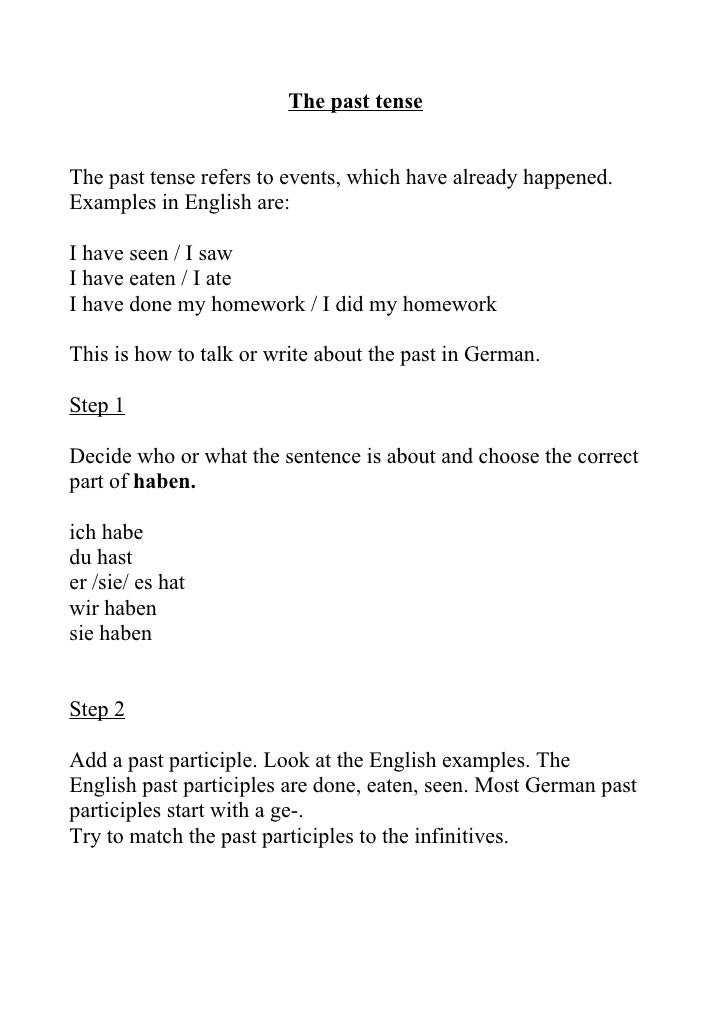 Vergangenheit Notizen Past Tense Notes Prateritum Notizen These