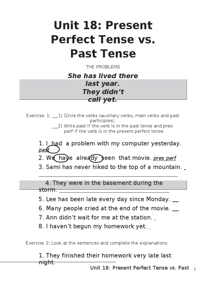 Unit 18 Present Perfect Tense Vs Past Tense Pdf