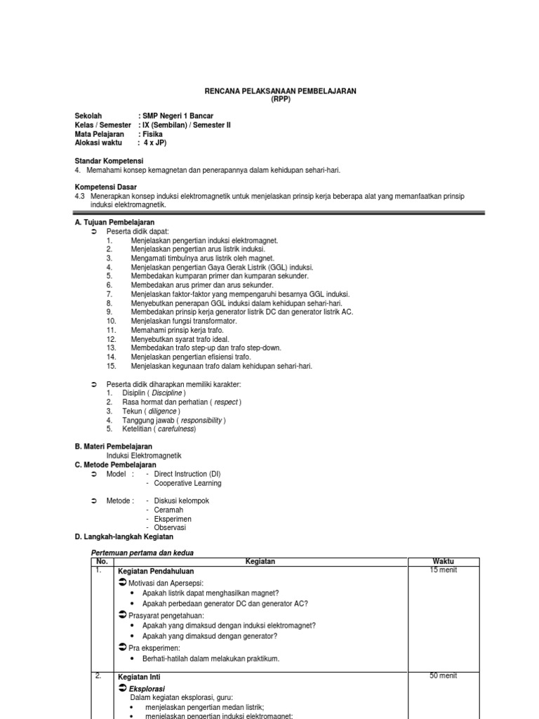 Rpp Fisika Smp Kelas 9 Induksi Elektromagnet