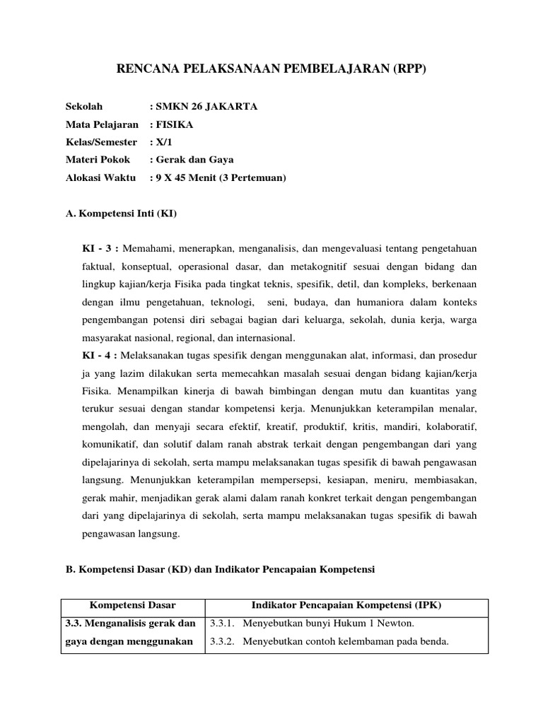 Rpp Newton S Law Smk Lsandra Oey Academia Edu