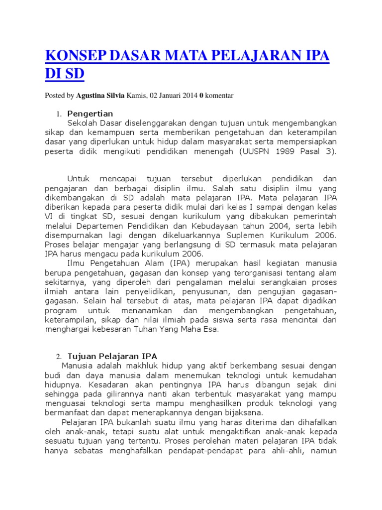 Konsep Dasar Mata Pelajaran Ipa Di Sd