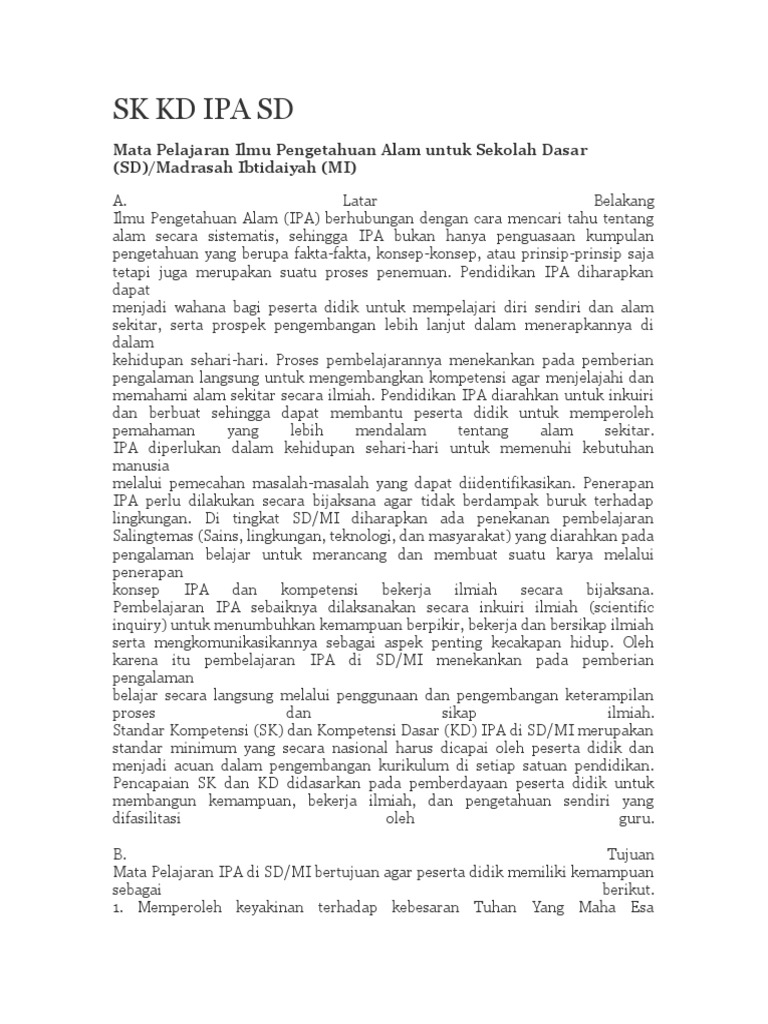 Konsep Dasar Mata Pelajaran Ipa Di Sd Wahana Info