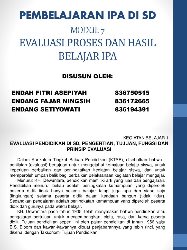Makalah Evaluasi Proses Dan Hasil Belajar Ipa Mi Nurul Huda Bandung