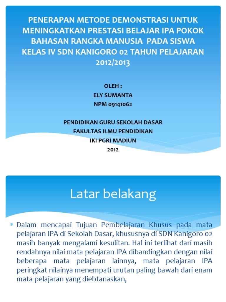 Penerapan Metode Demonstrasi Untuk Meningkatkan Prestasi Belajar Ipa